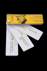 Tauchen Sie ein in die Mundartwelt Rudolf von Tavels – kompakt im handlichen Fächer mit typischen Begriffen des Dichters.